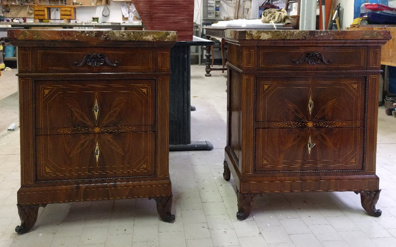 La differenza è che per ognuno di essi utilizziamo tecniche diverse che dipendono dal periodo storico in cui il mobile è stato prodotto e di conseguenza da quali materiali sono stati utilizzati.